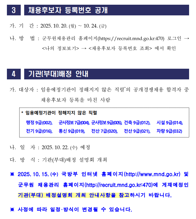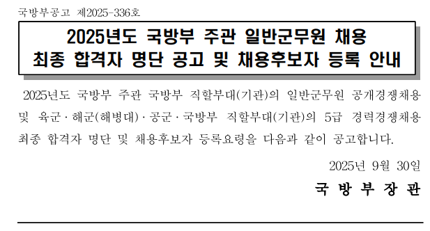 2025년 육 일반군무원 및 장애인 구분 모집 최종 합격자 발표가 공고되었습니다.