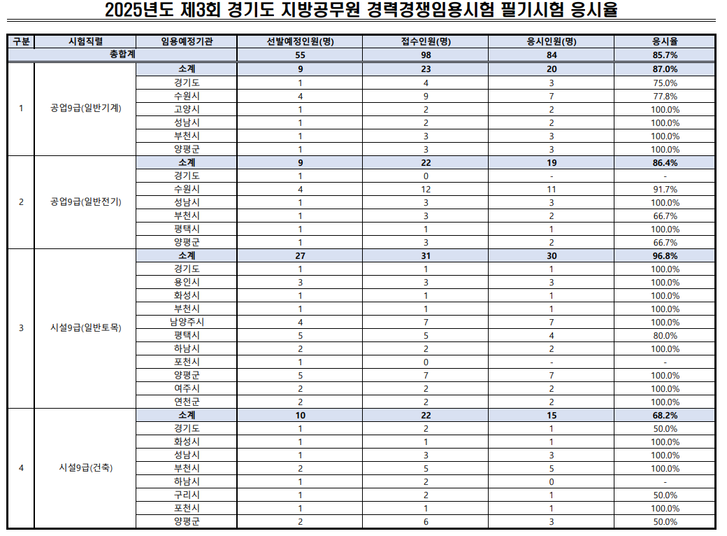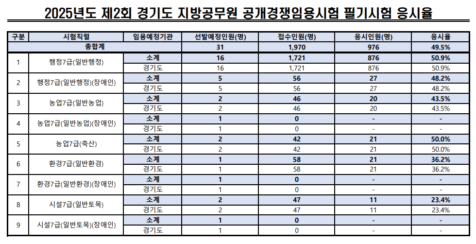 [7급][지방직] 2025년 경기도 지방공무원 임용시험 응시결과 (7급 外 포함)