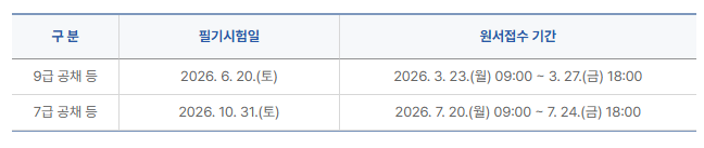 2026년 9급/7급 지방직 공채시험 일정이 발표되었습니다.