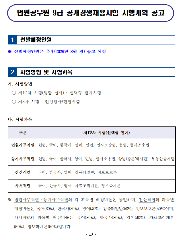 [9급][법원직] 2026년도 법원공무원 9급 공개경쟁채용시험 시행계획 공고