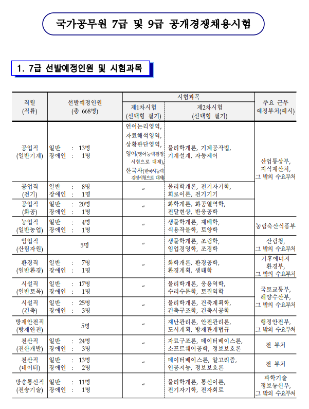 ★[국가직] 2026년 9급/7급 국가직 채용인원 등 공채 시험계획공고 발표