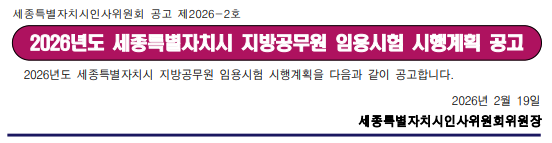 2026년 세종시 지방공무원 임용시험 시행계획이 공고되었습니다.