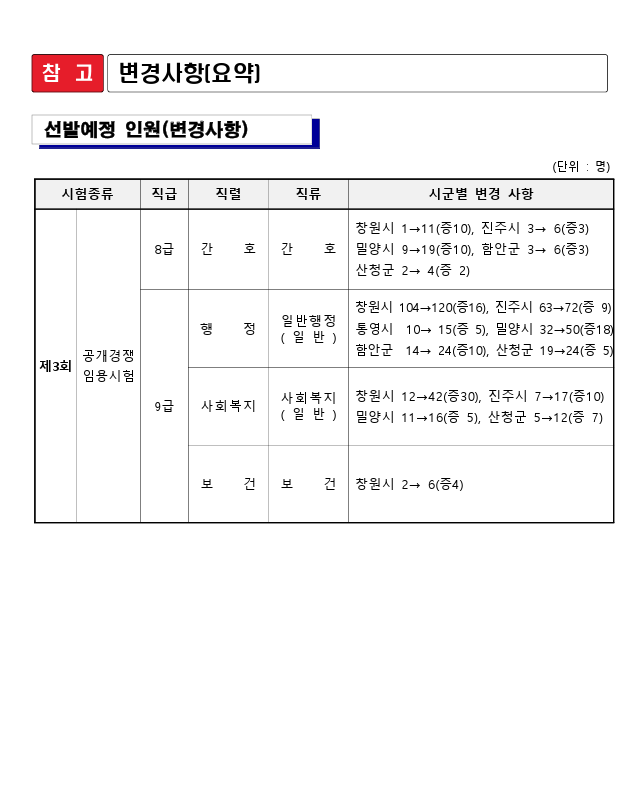 일부 직렬에서 선발예정인원이 증원되었으니 변경 공고된 시행 계획을 참고해주시기 바랍니다.