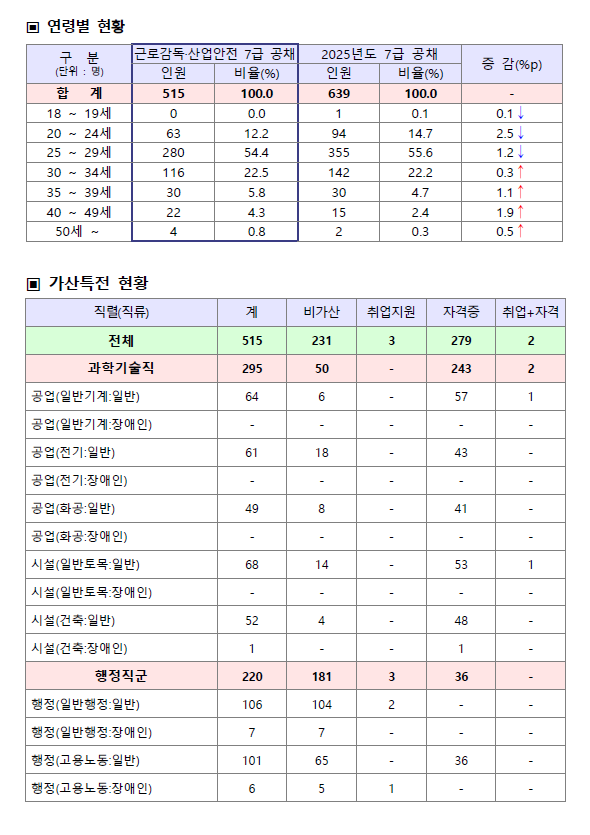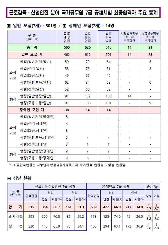 2025년 국가공무원 7급 공개경쟁채용시험 추가채용 최종 합격자 통계가 공고되었습니다.