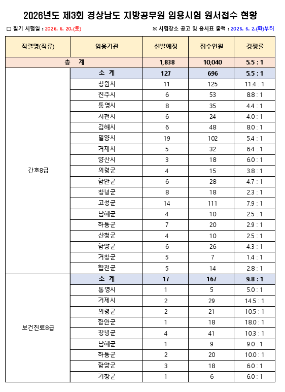 2026년 경상남도 8,9급 지방공무원 원서접수 결과가 발표되었습니다.
