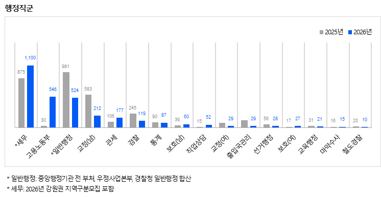 세무직은 2026년 총 1,100명을 선발하며 전년대비 225명이 증가했다.