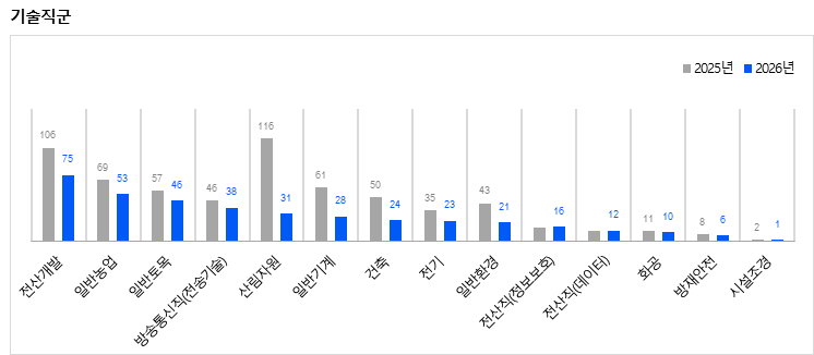 기술직군: 전반적인 감소세, IT 인력 수요 확인