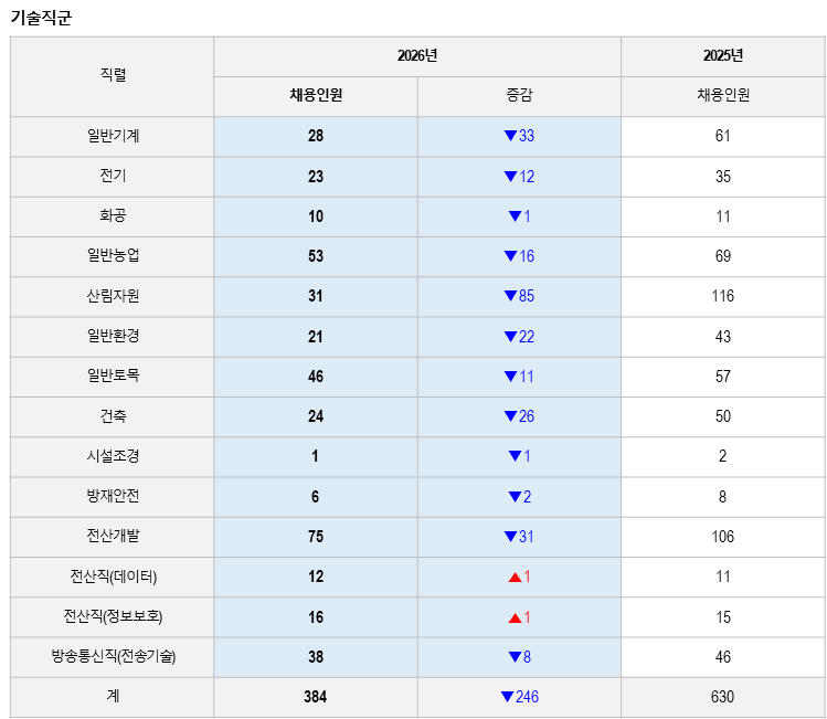 특히 작년에 최대 규모였던 산림자원직이 116명에서 31명으로 크게 감소했다.