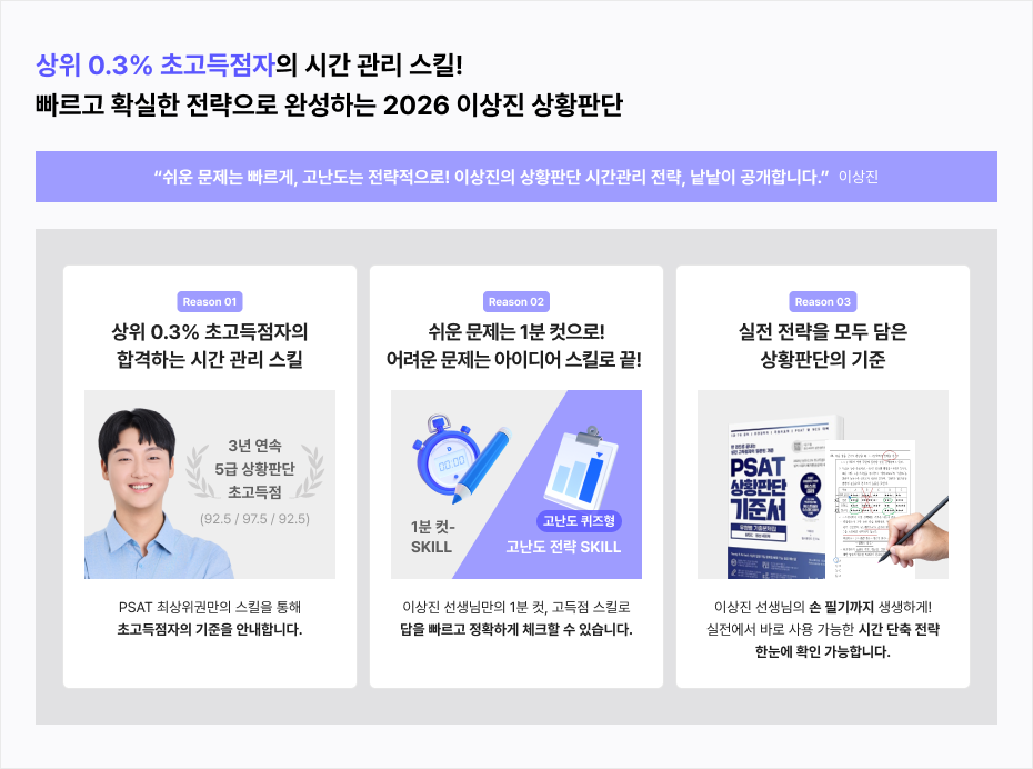[1월 개강 공지] [기본이론] 2026 이상진 7급 PSAT 합격하는 상황판단 기준세우기 Basic (엄선 400제)