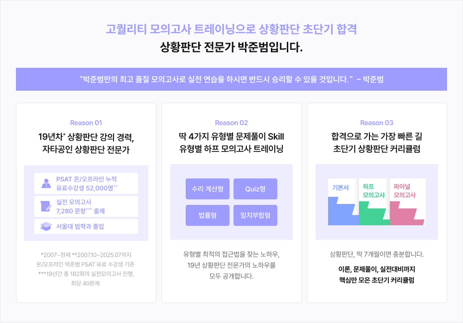 - 前) 합격의법학원 PSAT 상황판단 전임(2007~2013)